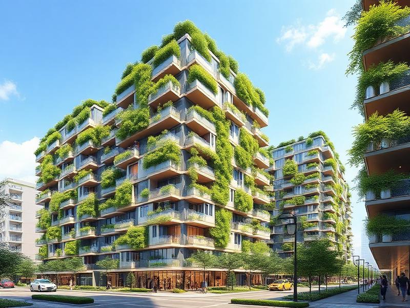 An eco-friendly mixed-use development combining residential, retail, and green spaces.